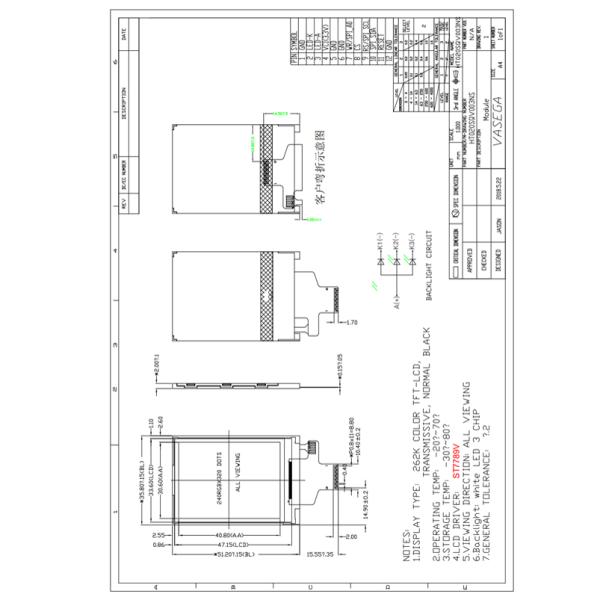 | 1.Display Type: | 2.0inch TFT LCD ST7789V |